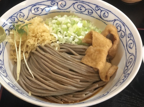 どんぶりの底に入れたタレと蕎麦、油揚げ、天かすを混ぜて麺に絡ませながら食べる絶品の一品。